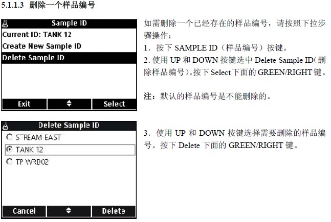 5.2.4 刪除數(shù)據(jù) 30 5.3 傳輸數(shù)據(jù) 31 5.3.1 傳輸數(shù)據(jù)選項 31 5.3.1.1 選擇打印報告的類型 31 5.3.1.2 在數(shù)據(jù)文件中包含欄目頭 32 5.3.2 將數(shù)據(jù)發(fā)送到打印機 33 5.3.3 將數(shù)據(jù)發(fā)送到閃存裝置 33 5.3.4 使用 HQd PC 應用軟件將數(shù)據(jù)發(fā)送到計算機 34 5.3.5 發(fā)送電極校準數(shù)據(jù) 35 5.4 查看打印出來的數(shù)據(jù)日志報告 36 5.4.1 報告的名稱 36 5.4.2 樣品的結果 36 5.4.2.1 基本報告 36 5.4.2.2 復雜報告 37 5.4.2.3 總報告 37 5.4.3 校準結果 38 5.4.4 檢查標準的結果 39 5.5 查看打印出來的校準報告 40 5.5.1 當前的校準報告 40 5.5.2 校準歷史報告 41 5.6 查看下載的數(shù)據(jù)文件 42 5.7 存檔并交換用戶的方法 45 第六章 pH 值的操作和方法 47 6.1 校準 pH 電極 47 6.1.1 校準錯誤 48 6.1.1.1 不能識別標準 48 6.1.1.2 斜率錯誤 48 6.2 進行 pH 值測量 49 6.3 運行檢查標準 49 6.3.1 自動檢查標準或定期檢查標準 49 6.3.2 測量檢查標準 50 6.3.3 延遲檢查標準 51 6.4 設定 pH 方法 51 6.5 修改當前的方法菜單 6.5.1 修改 pH 方法 6.5.2 修改 pH 值測量的選項 6.5.3 修改 pH 值校準的選項 6.5.4 修改 pH 值檢查標準的選項 6.5.4.1 選擇檢查標準的緩沖液 6.5.4.2 使用定制的檢查標準 6.5.4.3 編輯檢查標準提示器選項 6.5.4.4 編輯檢查標準認可的準則 6.5.5 修改 pH 值測量單位 |